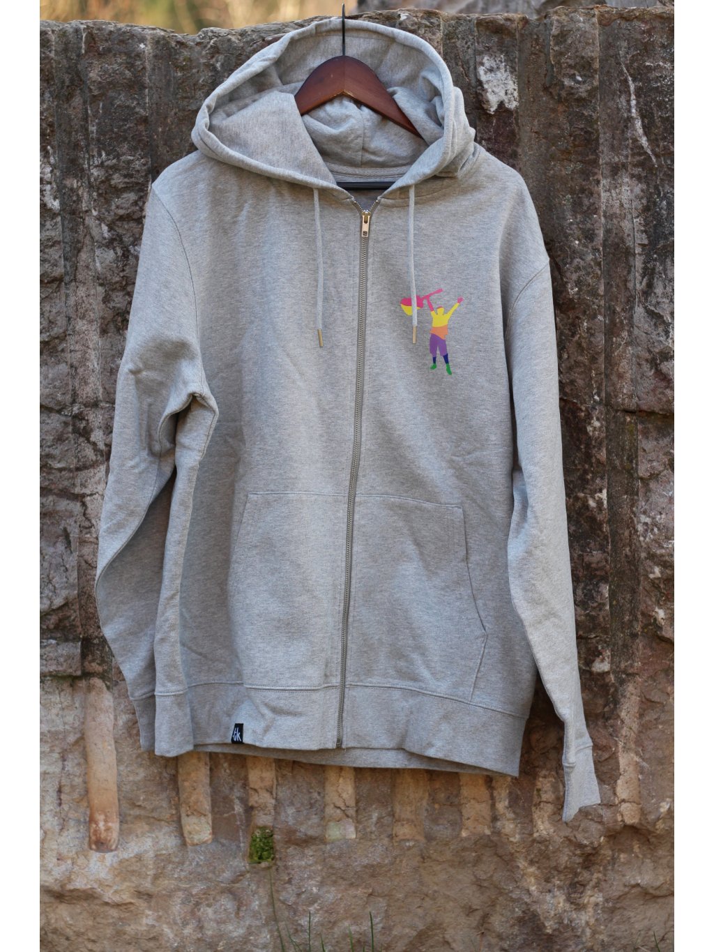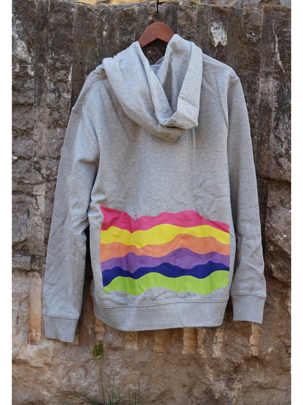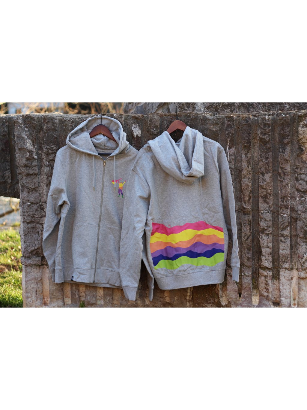 Šedá unisex mikina TOMÁŠ S KYTAROU a DUHOVÝM POTISKEM na zádech