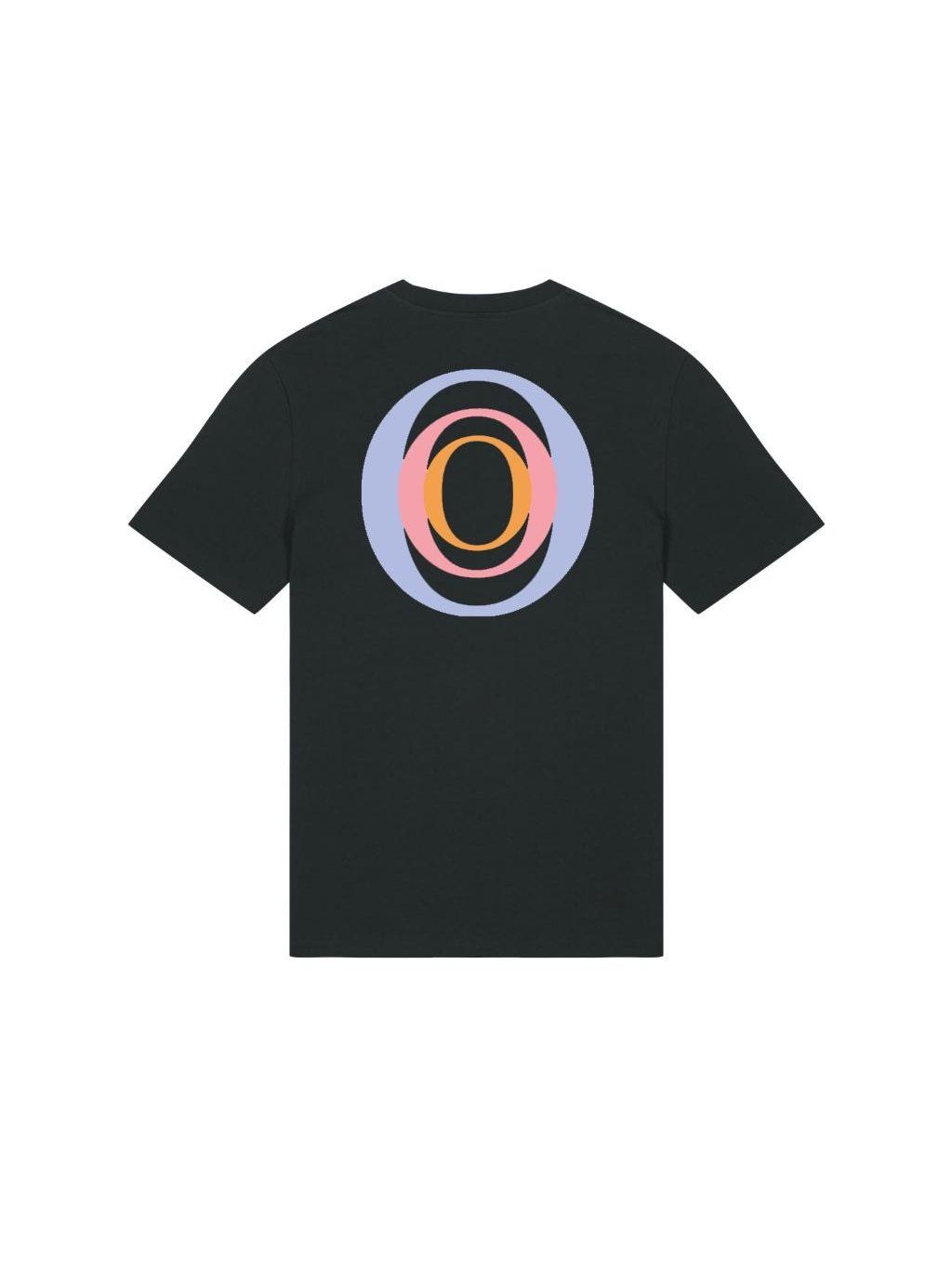 Černé unisex tričko s potiskem OOO na přední i zadní straně.